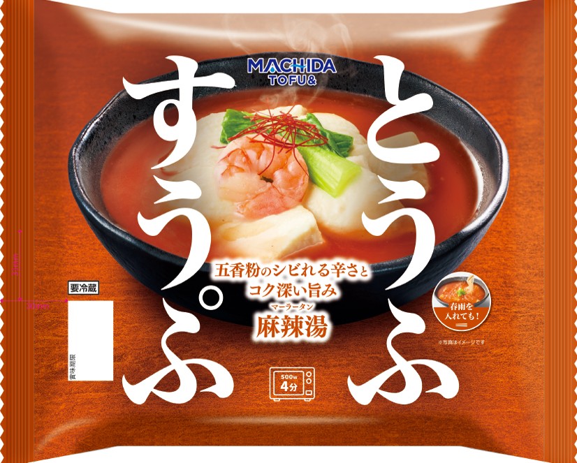 五香粉のしびれる辛さとコク深い味わいのマーラータンスープとなめらかなとうふのセット。水で希釈し電子レンジで簡単調理。